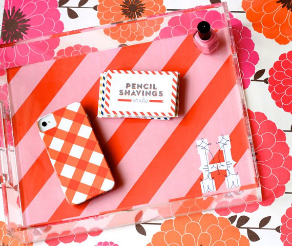 I think I mentioned in a previous post that these White 7FAM Distressed Jeans will be making some major repeat performances this Spring & Summer---I absolutely LOVE them! With that in mind, I wanted to show a couple of casual ways to brighten up the white. Both casual & comfy, either look is perfect for shopping, lunch, days with the kiddos, what have you. I just love how the white is the perfect canvas for color---speaking of Color, Rachel from Pencil Shavings Studio states she's, "Never met a color she didn't like." Well said my dear! I am addictively drawn to her fun pieces be they a tablet case, phone cover, or paper goods---with that in mind, I just had to share the love with you all---we've done a Lucite Tray Giveaway before & well gang, we're gonna do one again!! Just another way to celebrate tomorrow's anniversary/bday & say Thank You, I am giving away a lucite tray from Pencil Shavings Studio to one s + s reader! See some of my faves below as well as entry rules: